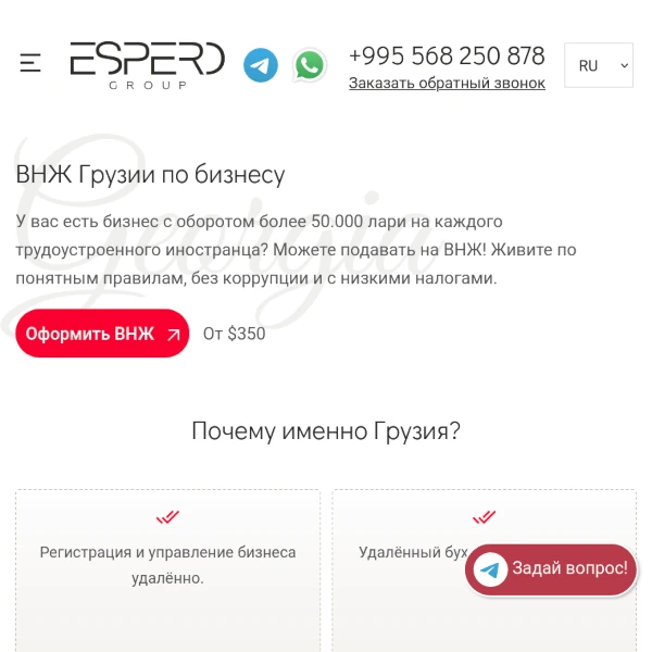 Отзыв о компании Эсперо о помощи в получении ВНЖ Грузии